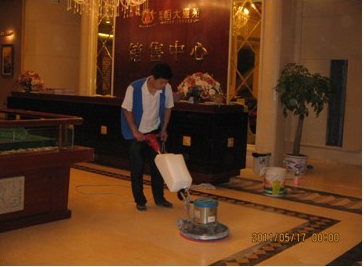 迪邦保潔公司人員正在為“恒大雅苑銷(xiāo)售中心”做大理石翻新。