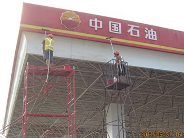 迪邦保潔公司人員正在為“中國(guó)石油”做招牌清洗。