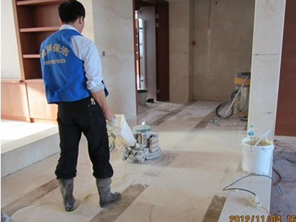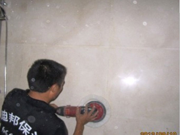 迪邦保潔公司保潔員正在為“暨陽福建商會(huì)”做地面、墻面石材翻新